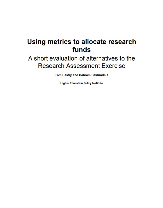 The Government has announced its “firm intention” to discontinue the Research Assessment Exercise as the basis for allocating the research funds provided by HEFCE, and replacing it with ‘metrics’, based largely on the success of universities in securing external research income. This report analyses the financial and behavioural implications of this.