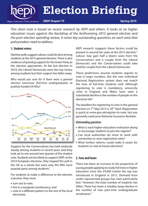 At the HEPI / Times Higher Education / Universities UK / Open University election hustings, held at Church House in central London on the evening of Monday, 2nd March, we published a one-off special Election Briefing.