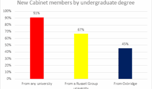 As the dust begins to settle after a historic reshuffle, we take a look at the new Cabinet and their higher education backgrounds. Our initial analysis reveals: 91% went to university (one was at Sandhurst, one at Agricultural College) Two thirds (67%) went to a Russell Group university Nearly half (45%) were at Oxbridge (10 … Continue reading Where and what did the new Cabinet study?