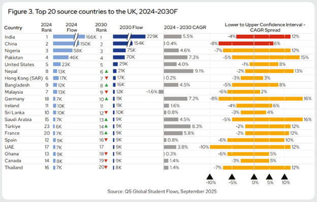 However, enrolments from Europe, which have declined after Brexit on average by more than 8% annually between 2018 and 2024, are expected to grow modestly at around 2.5% through to 2030.