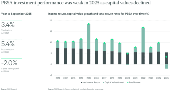 2025 saw concerns around occupancy levels surface in some markets. Two of the largest (PBSA) providers in the UK reported that reservations were below their level at the same point in previous years in recent trading updates. It is no coincidence that around 150 (HEI) providers failed to meet international recruitment targets for the 2025/26 academic year. As a result, despite 2025 having the strongest third quarter of investment on record, pricing softened by 25 bps through the first nine months of 2025.