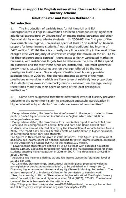 Financial support in English universities: the case for a national bursary scheme
