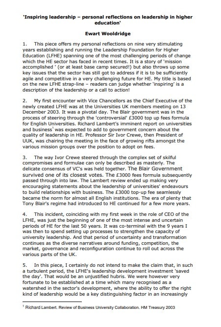 This HEPI Report, written by Ewart Wooldridge, founding Chief Executive of the Leadership for Higher Education (LFHE) offers his personal reflections on the nine years he spent establishing and running the LFHE spanning one of the most challenging periods of change which the HE sector has faced in recent times.