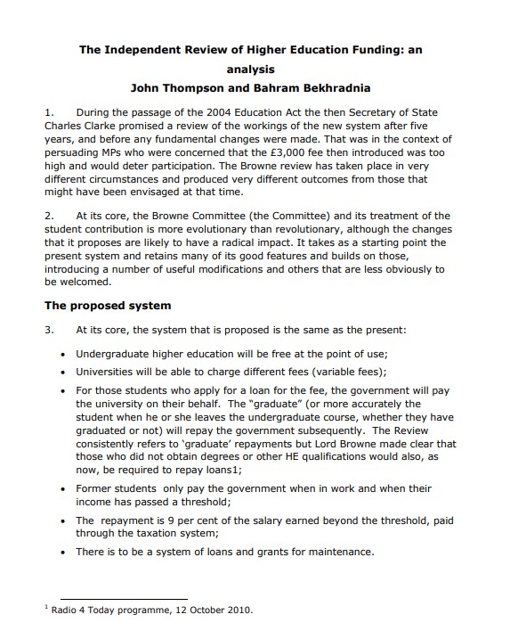 The Independent Review of Higher Education Funding: an analysis